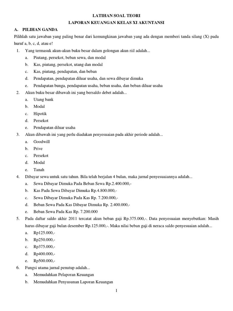 Soal Pilihan Ganda Myob Beserta Jawabannya Kelas 11 - Soal Pilihan Ganda Akuntansi Perusahaan Jasa Dan Jawabannya Kelas 11 Beinyu Com - Soal uas pas myob accounting smk kelas 11 semester 1 dan jawaban.. Soal pilihan ganda sistem komputer kelas 11 tkj beserta jawabannya. Lisa alfita sari kelas : Soal pilihan ganda akuntansi perusahaan manufaktur dan jawabannya . Soal soal pilihan ganda myob beserta . Latihan soal pilihan ganda materi myob beserta jawaban.